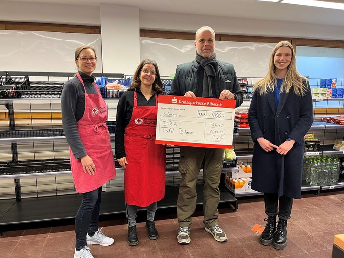 Der Hegering Biberach hat sich dieses Jahr nach einer schönen und sehr gut besuchten Waldweihnacht entschieden den Erlös von 1.000€ an die Tafel in Biberach (DRK) zu spenden. "Aufgrund der gestiegenen Energie- und Lebensmittelpreise ist es für uns naheliegend gewesen, den Betrag der Tafel zu geben. Wir möchten einen Beitrag leisten, damit die Bedürftigen weiterhin vergünstigte Lebensmittel erhalten können." so Hegeringleiter Andreas Kübler. Die Ehrenamtlichen des Tafelteams, Anja Clausen und Daniela Laasch sowie Alexandra Meyer, freuten sich bei der Spendenübergabe sichtlich.
