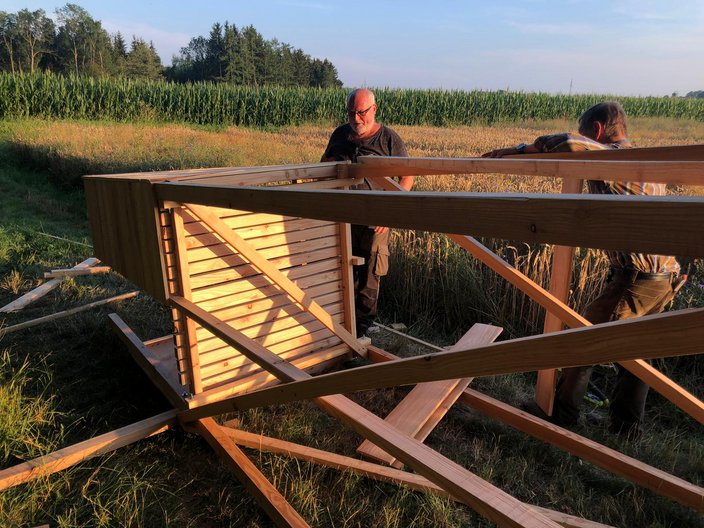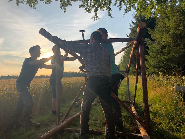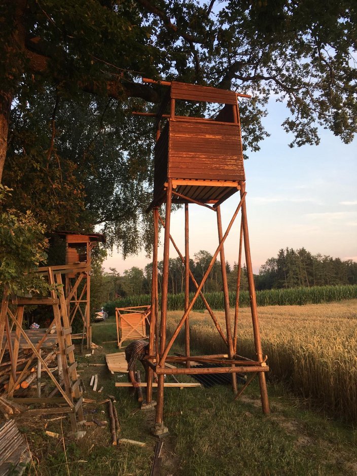 Bei der mehrtägigen Aktion entsanden zwei tolle Hochsitze, von denen einer im Ochsenhausener Revier von der B312 aus bestaunt werden kann. Vielen Dank Ernst!