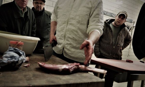 Raimund Meier gibt den Jägern des Hegerings Ochsenhausen einen Einblick, wie er Rehwild zerwirkt