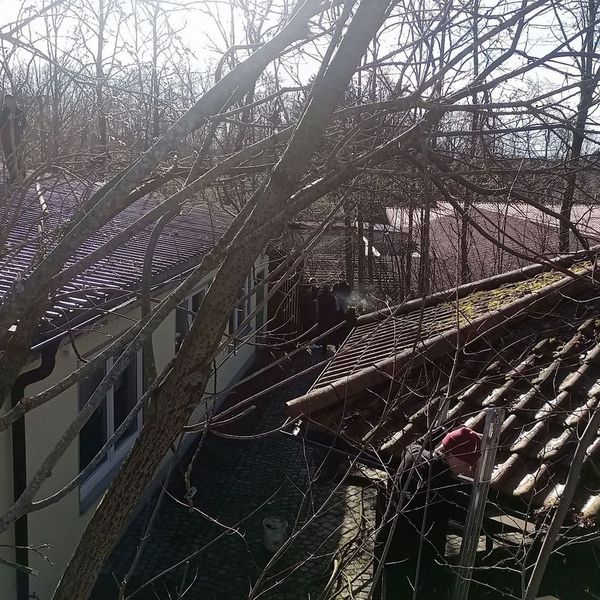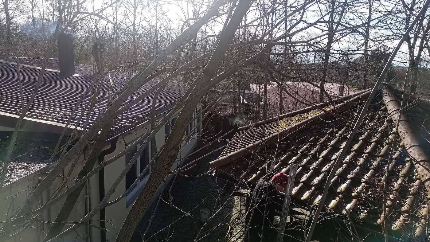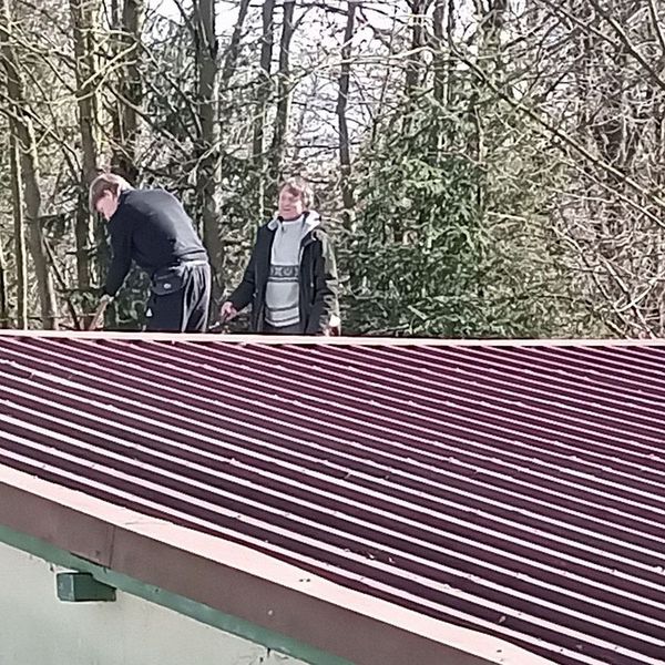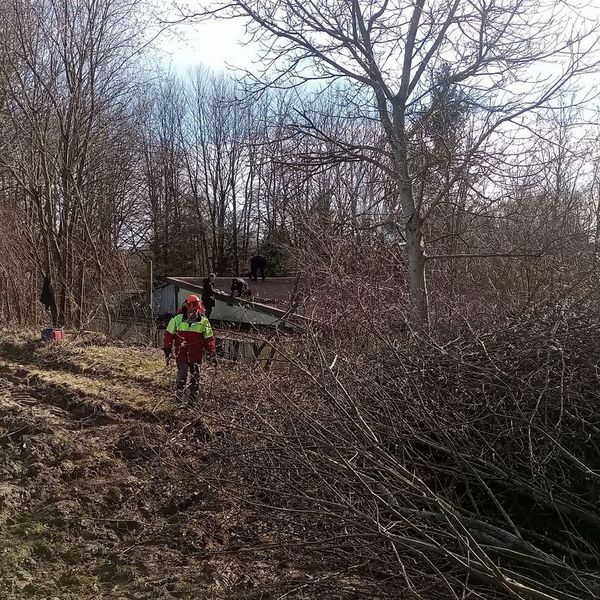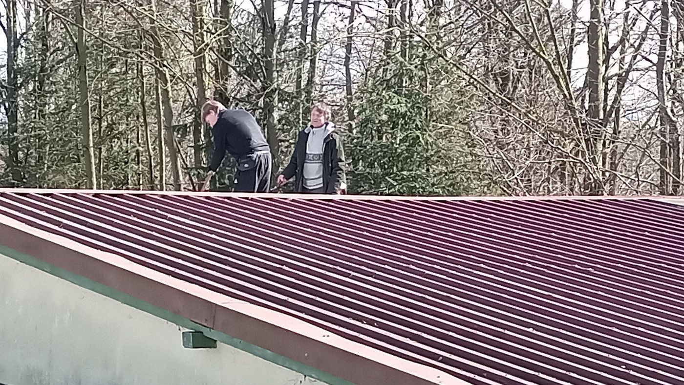 Ferner konnte auf den Schießständen, dem Parkplatz und dem Pavillonsbereich das komplette Laub entfernt werden. - Am Samstag 24.02.2024 wurden dann die Dächer und die Dachrinnen vom Laub befreit. Zudem wurde der komplette Hang-Containerbereich vom Gehölz frei geschnitten.