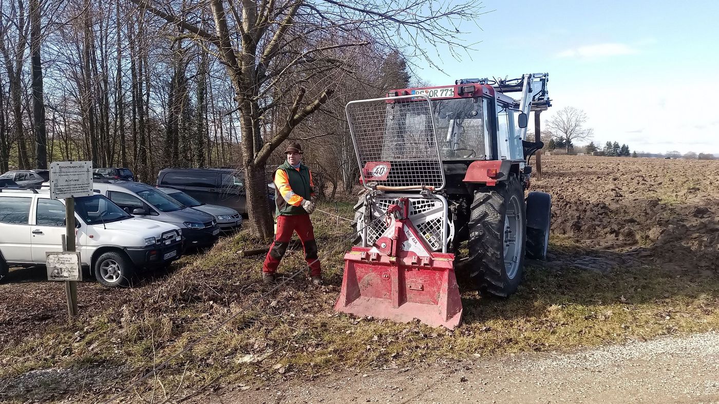 Ein besonderer Dank gilt Oli Ruepp, der seinen Traktor mit Seilwinde zum Arbeitseinsatz am Sa 24.02.2024 mitgebracht hatte, was uns das Herausziehen des Schnittgutes ungemein erleichterte und somit viel an Arbeitszeit und unnötige Mühen/Arbeitskraft ersparte.
