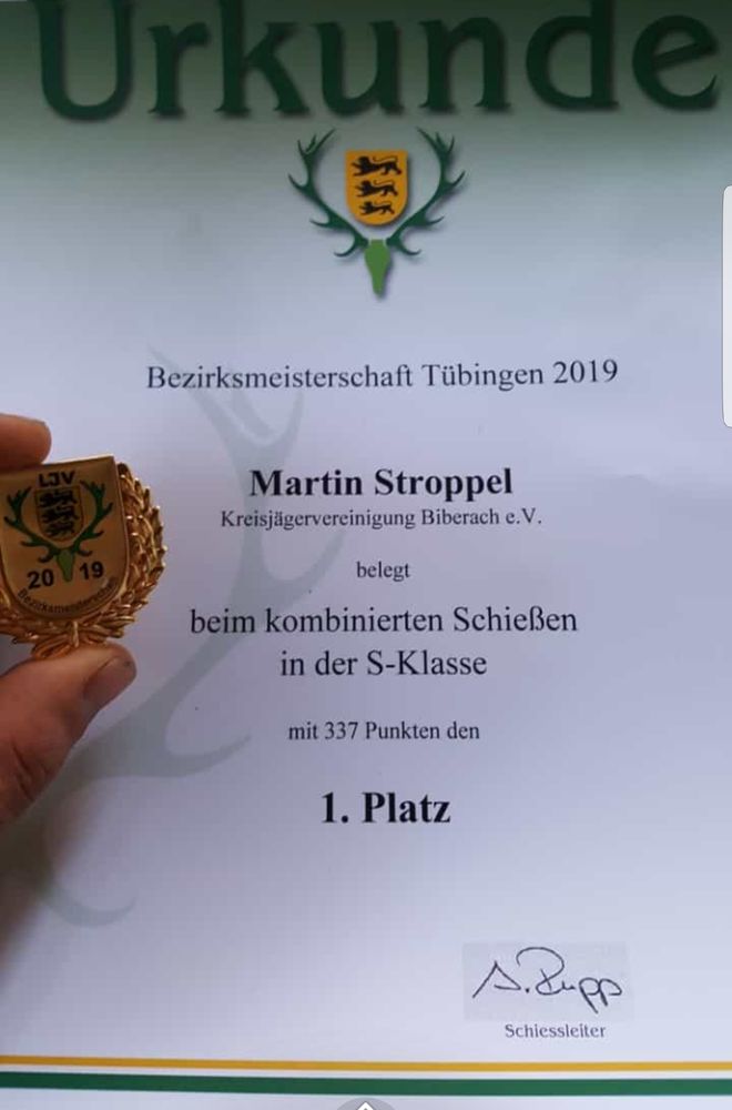 Der Hegering Laupheim gratuliert seinem Mitglied Martin Stroppel zum hervorragenden Abschneiden bei der diesjährigen Bezirksmeisterschaft im jagdlichen Schießen des Bezirkes Tübingen.