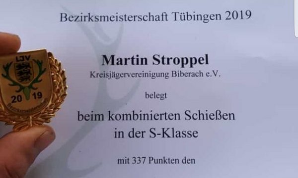 Großer Erfolg für Martin Stroppel bei der diesjährigen Bezirksmeisterschaft im jagdlichen Schießen
